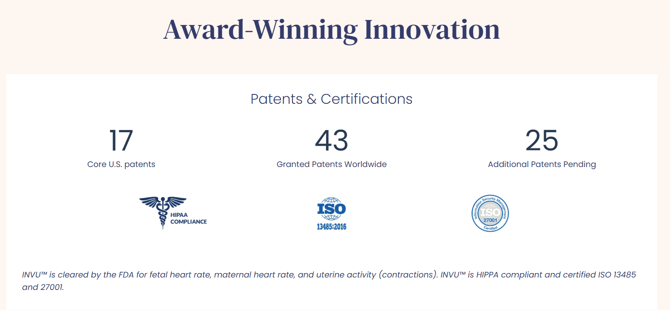 * INVU by NUVO™ is FDA-cleared for fetal heart rate, maternal heart rate, and uterine activity (contractions) and has also received CE approval, demonstrating compliance with European Union safety, health, and environmental standards.